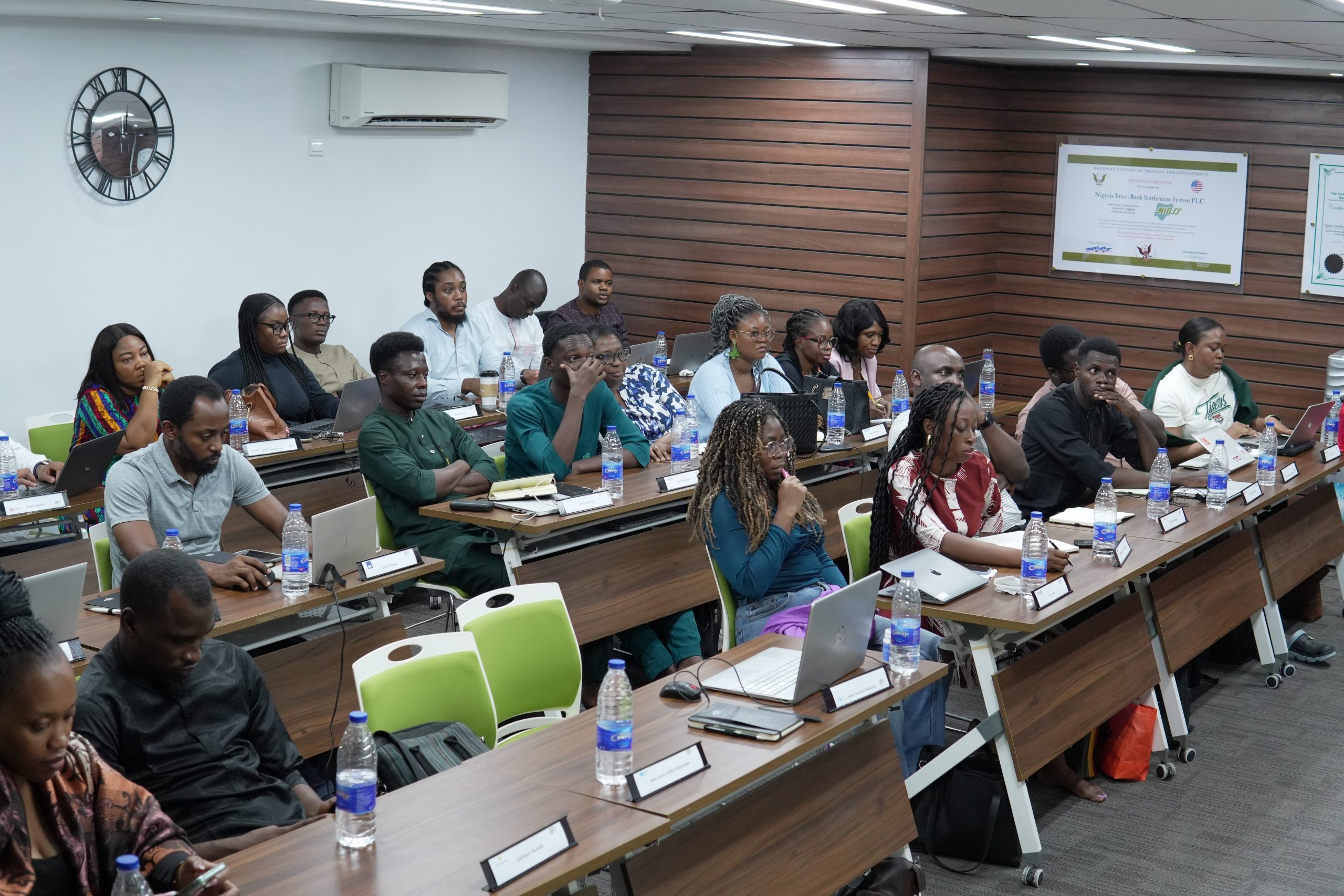 Cross section of participants during a class session at the 2025 Payment and Settlement Masterclass programme held at NIBSS academy